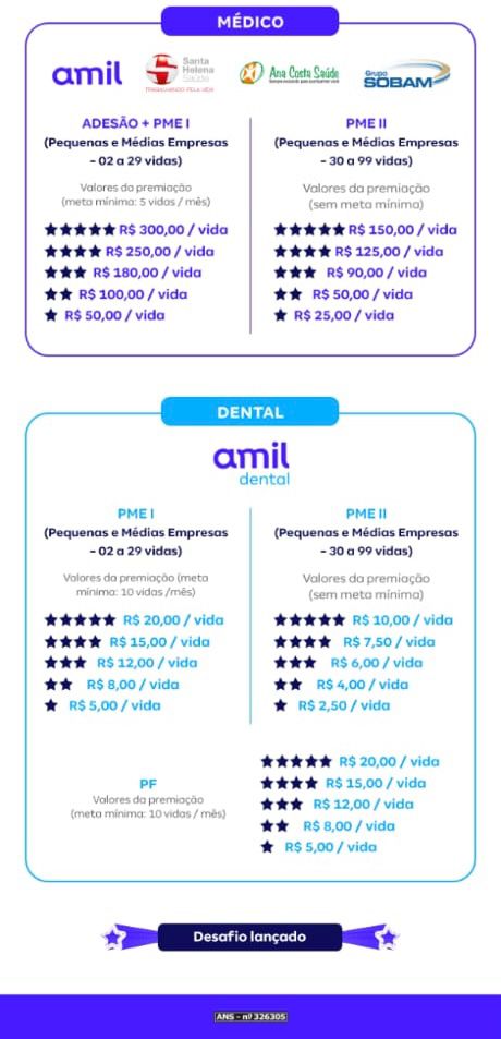 Tabela de Preços Amil Manual_de_Vendas_PME- (Atualizado em 01/12/25) Deck Amil e Amil One – (Atualizado em 20/05/25) Clube Estrelas Amil_Regulamento_Corretor – (Atualizado em 20/05/25) Material de Apoio AMIL_NOVOS_PLANOS_MG_Versão Treinamento – (Atualizado em 20/05/25) Acesse kitcorretoramil.com.br