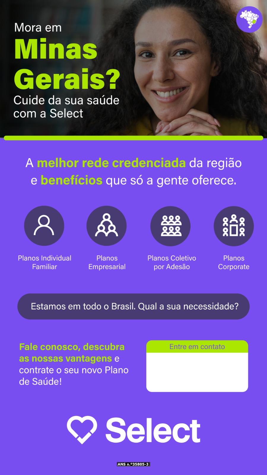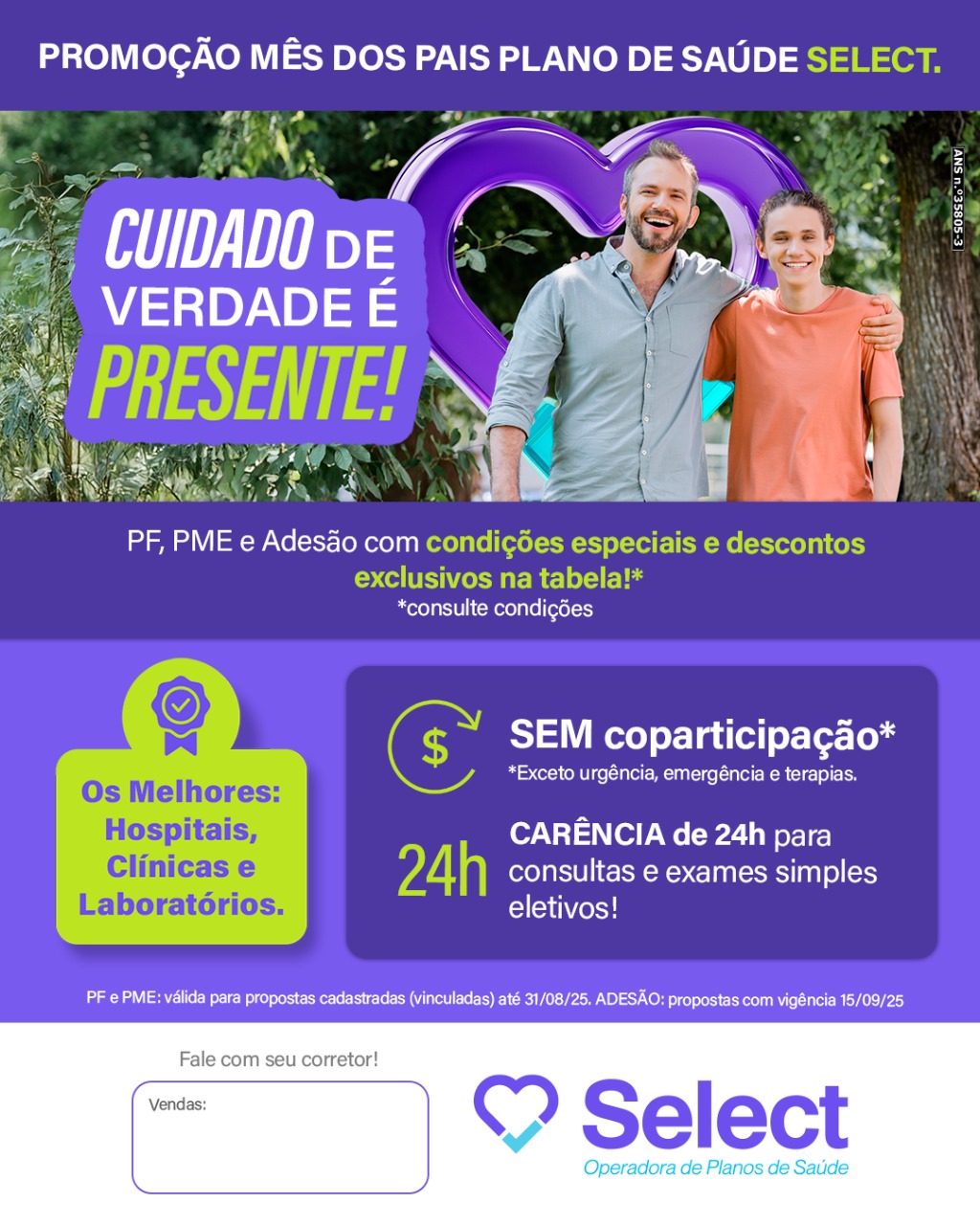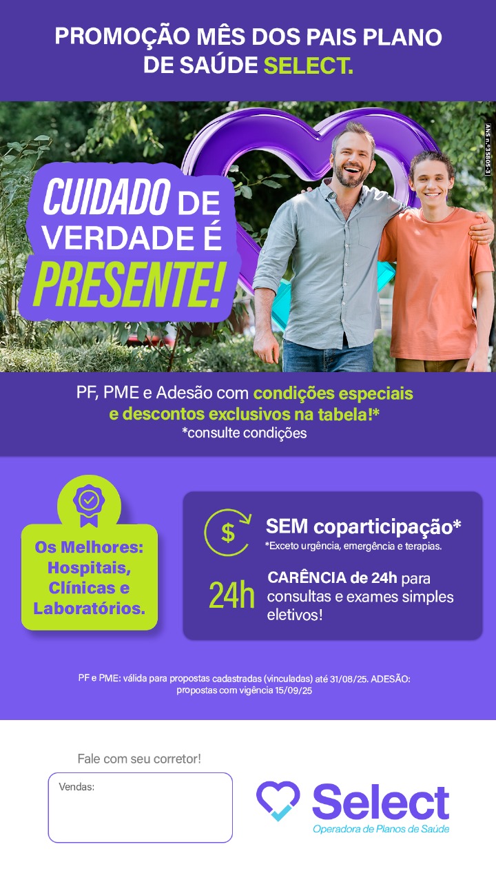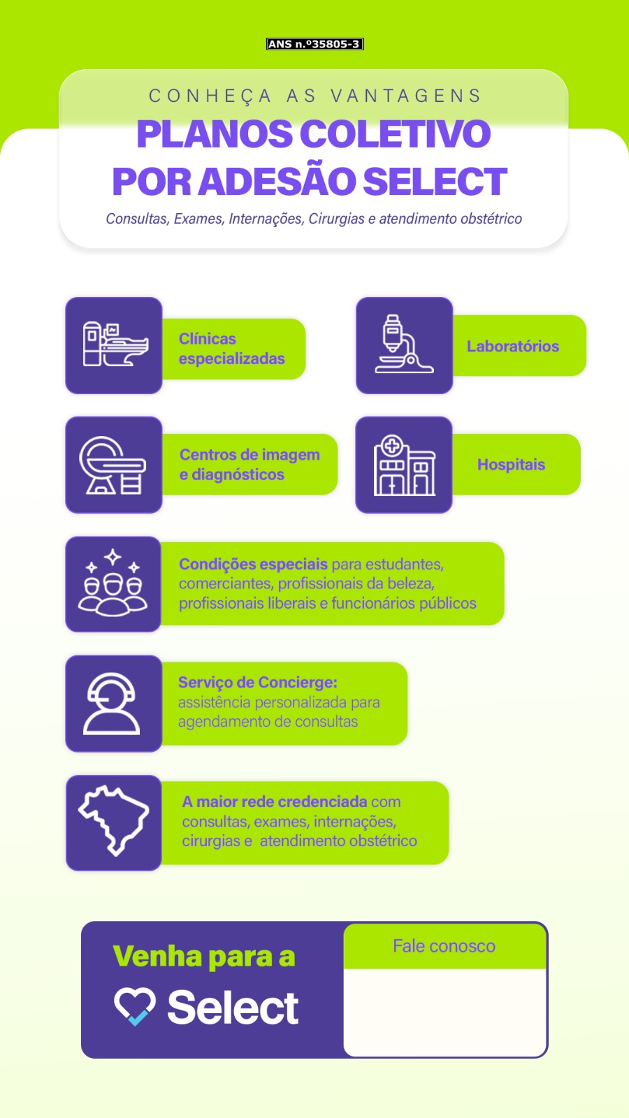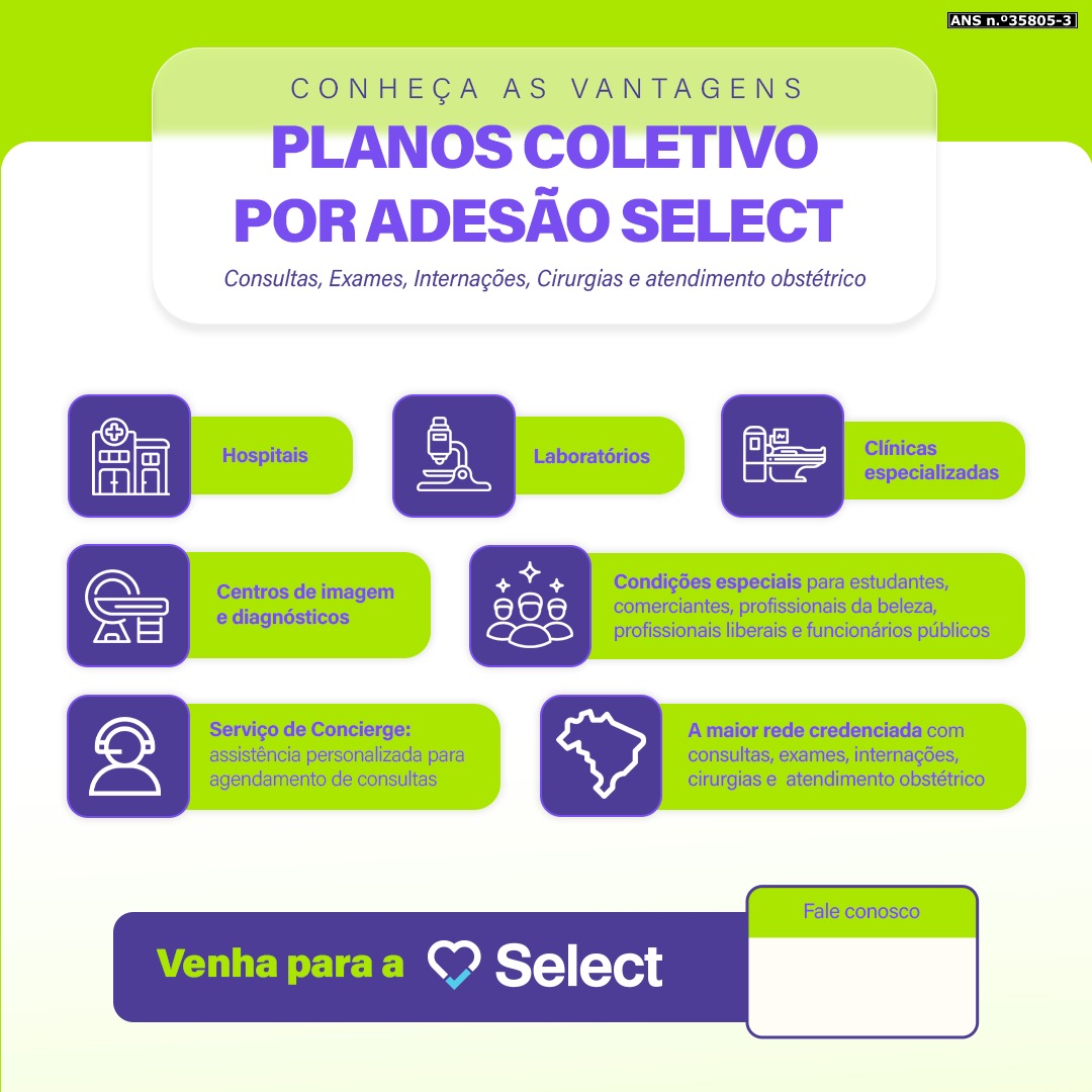 Aproveite as condições e tenha um plano Select para você e sua família!