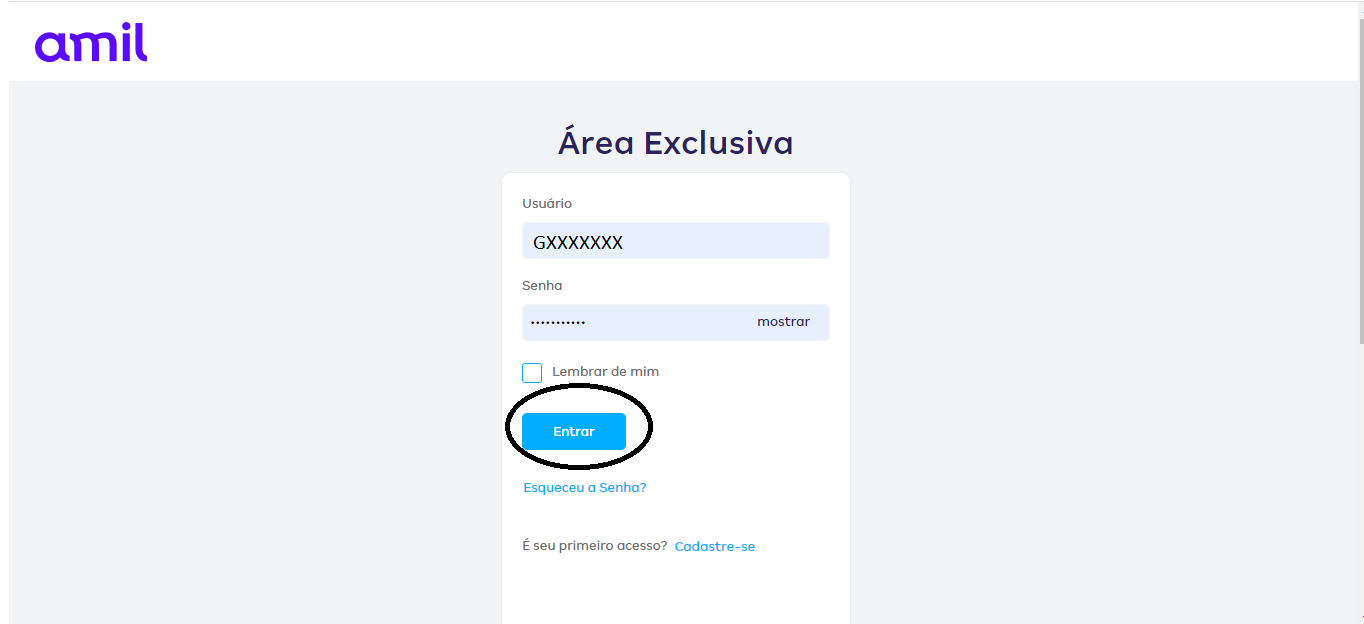 Tendo o login de usuário e senha, basta clicar em “Entrar”: