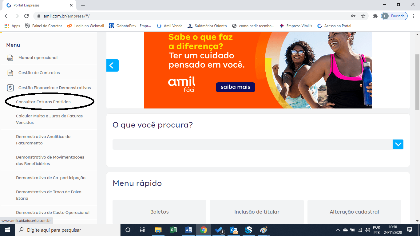 Acesse o site: https://www.amil.com.br/empresa/#/login