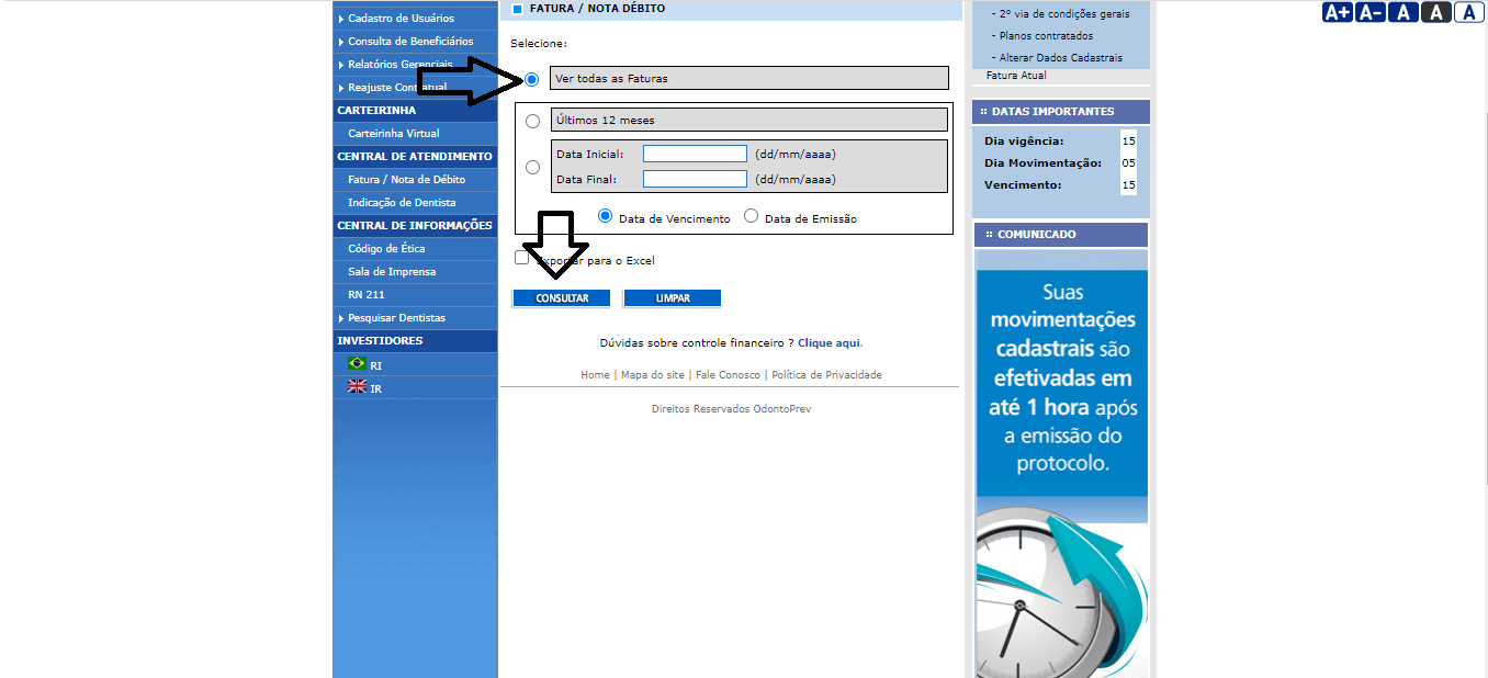 Clicar em Ver todas as “Faturas” e em “Consultar”: