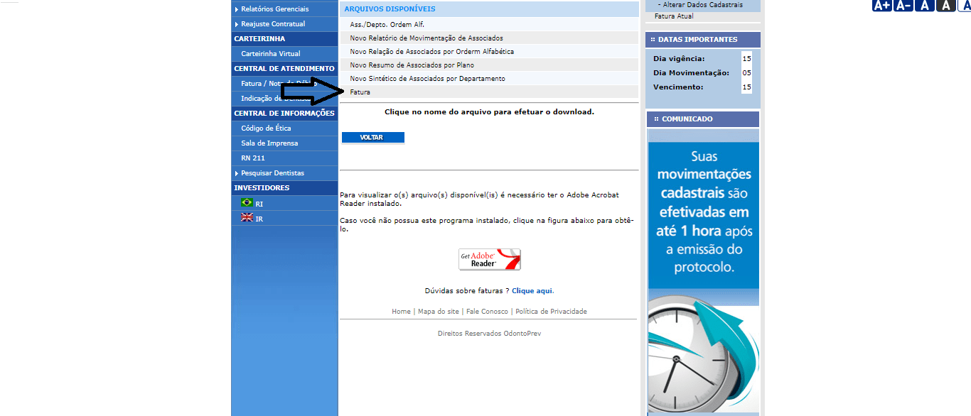 E na próxima tela em “Fatura”, que a mesma aparecerá em nova guia para baixar/salvar:
