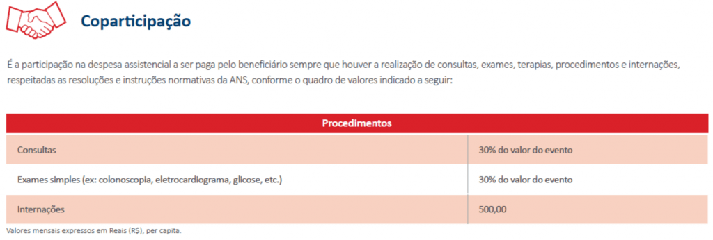 1) O que é coparticipação? Trata-se do valor pago à parte pela realização de um procedimento ou evento, juntamente com a mensalidade do plano de saúde.