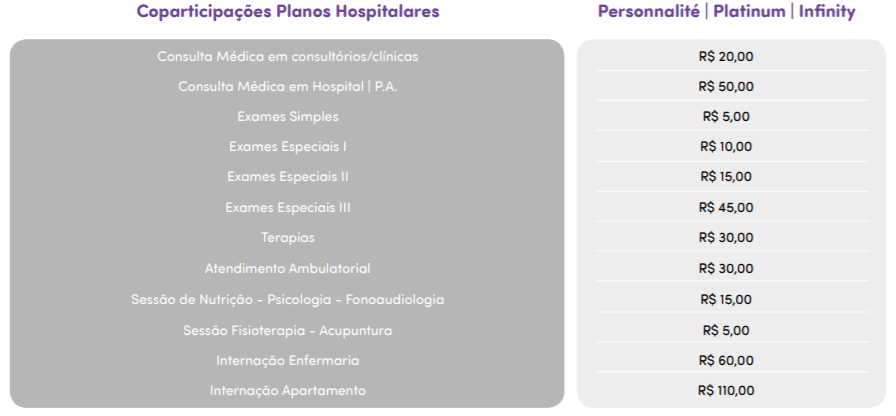 Premium Saúde PME | Coparticipações Premium Personnalité, Platinum e Infinity.