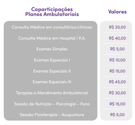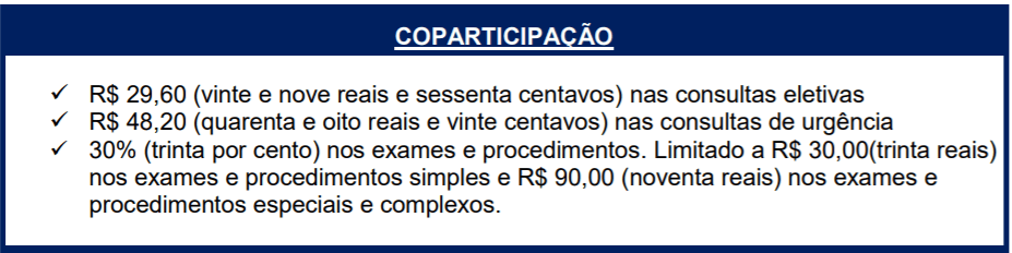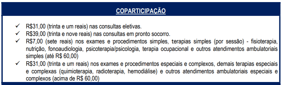 Exemplos de copartipações dos principais Planos de Saúde: