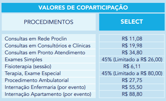 Boa Tarde!Os valores das co-participações são pre definidas pelos planos de saúde, com isso cada plano tem a sua co-participação.Se tiver alguma duvida, favor nos ligar ou fazer um novo comentário incluindo o seu e-mail, o seu e-mail não será publicado.Rodrigo Otávio