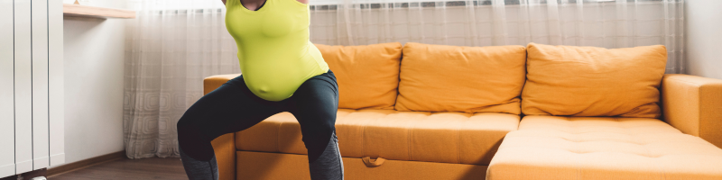 O agachamento é um exercício poderoso, porque ajuda a abrir a pelve e fortalecer os músculos do assoalho pélvico — ou seja, aqueles que vão trabalhar bastante na hora do parto! Além disso, melhora a postura, ativa a circulação e ajuda a aliviar desconfortos nas costas, comuns no fim da gestação.