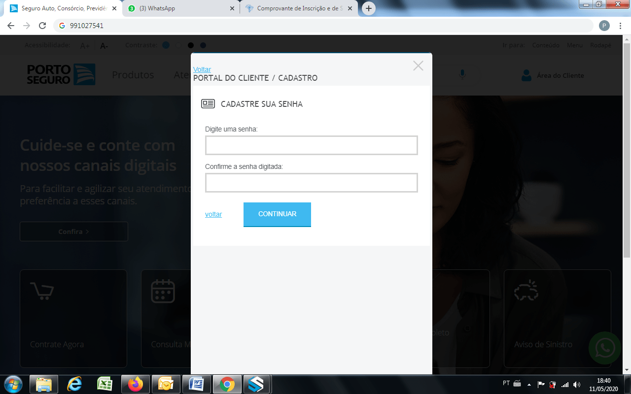 Cadastrar a senha de acesso nos campos: “Digite sua Senha” e “Confirme sua Senha” e clicar em “Continuar”.