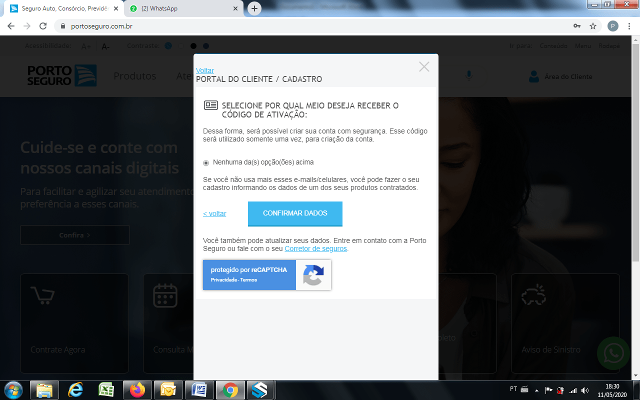 Em seguida, selecionar a opção disponível, seguir com a opção de segurança do “re-CAPTCHA” e clicar em “Confirmar Dados”.