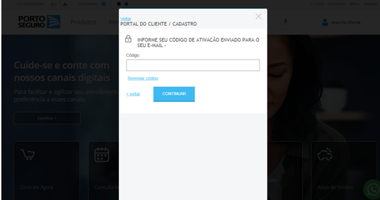 Em seguida, informar o “Código” e clicar em “Continuar”.