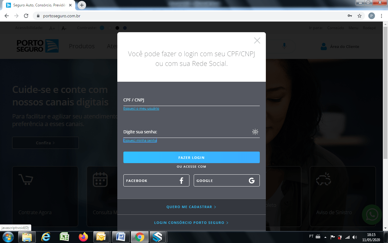 Para ter acesso ao App do Porto Odonto, é necessário realizar o cadastro no site: https://www.portoseguro.com.br/, depois basta clicar em “Área do Cliente”.