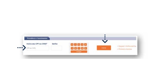 O site do Prev-Invest Online será aberto e você deverá inserir seu CPF/CNPJ e Senha no teclado virtual e